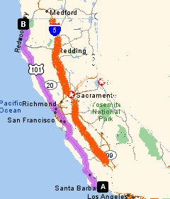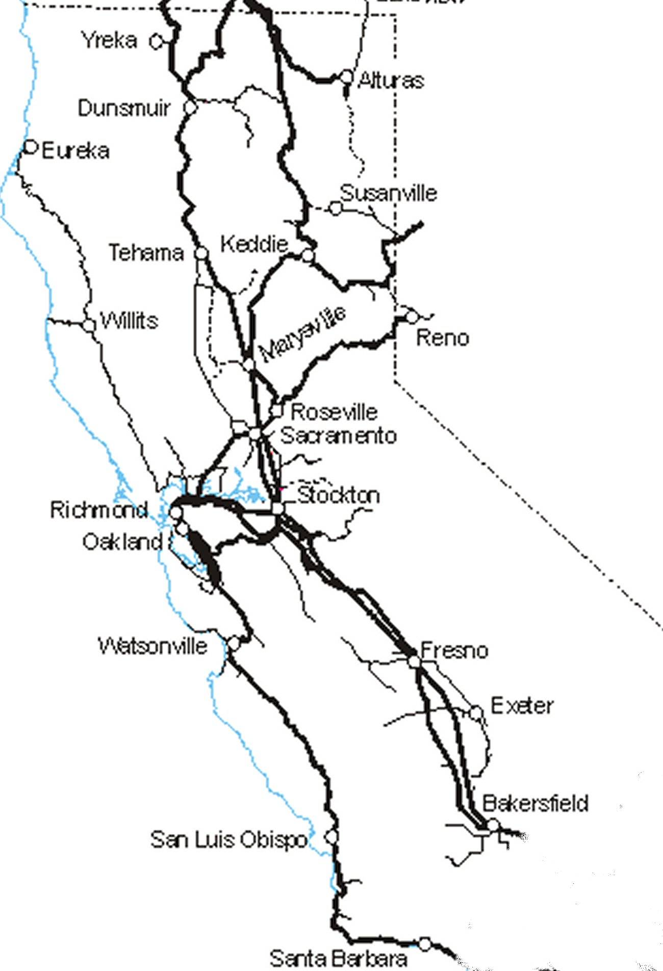 Finally, if one takes a quick look at the California highway and railroad maps one can see that transportation corridors have created an east-west split in the North portion of the State: