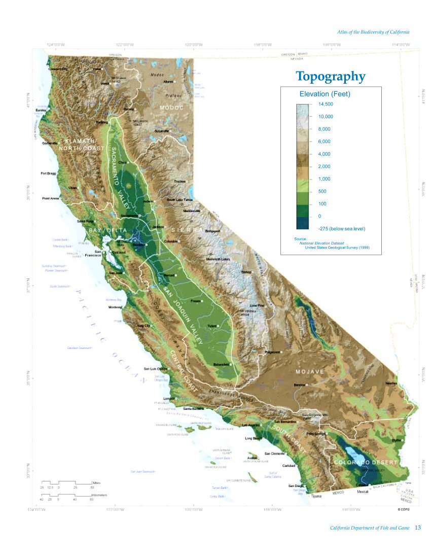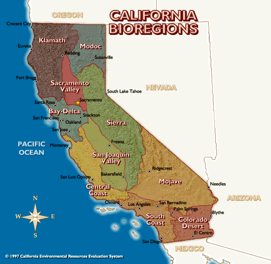Before tackling the arguments associated with the pros and cons of dividing California, the issue of how many states to divide California into should be examined. Californians who are familiar with their state know that one can find a rationale for dividing the state into anywhere from two states to eight states. California is physically diverse. The State's California Environmental Resources Evaluation System (CERES) has performed a fairly thorough job of mapping the regions of the State as follows: